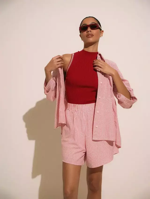 Uma peça que eleva suas composições com o frescor do verão, essa é a camisa com padronagem em listras e fendas laterais. A peça possui meia manga com abotoamento, a tornando mais leve e ideal para os dias quentes da estação.